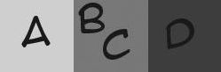 類似于下面這樣的視覺欺騙,我們在生活中肯定見過不少。這兒做了個超簡化的視覺模型,總共就用了三個色階,之所以說其中存在著“欺騙”,就是因為看上去C的色調(diào)要比B深,但事實上他們卻是一樣的明度。